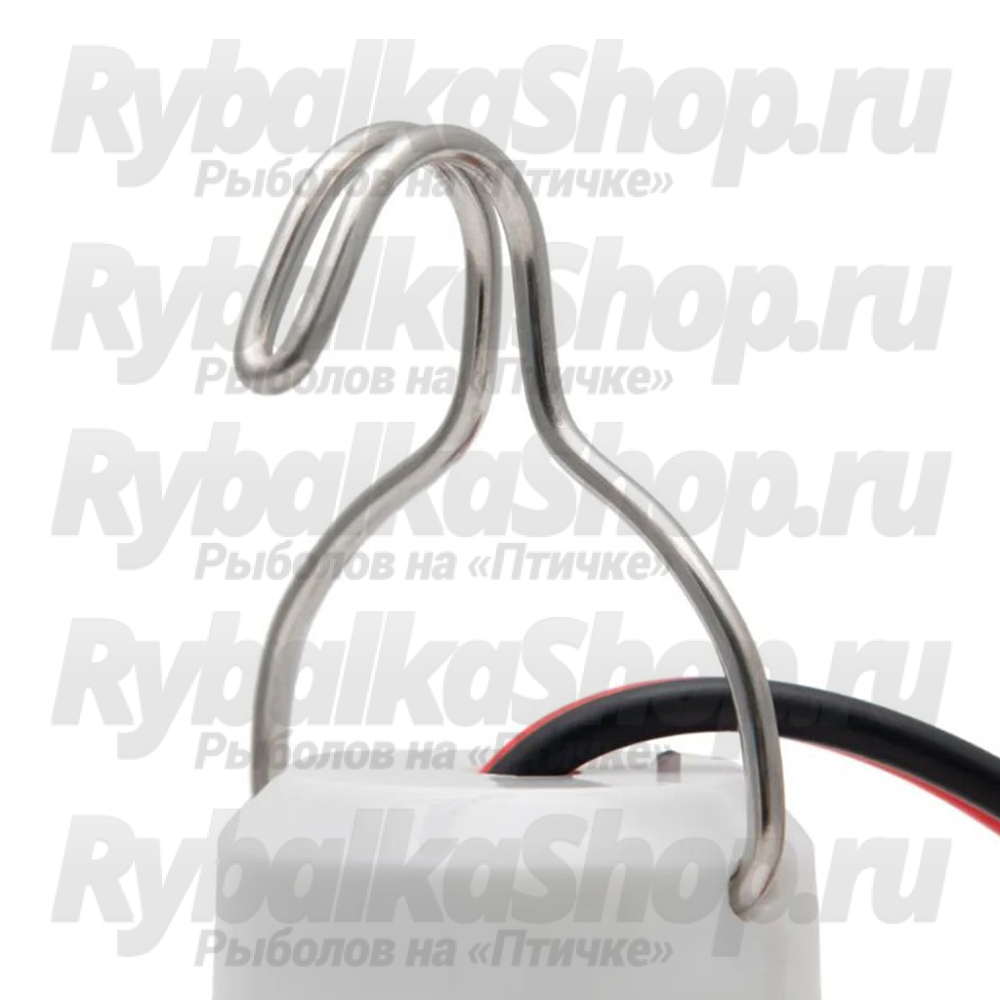 Закрепите фонарь на подвесе, для этого на нем есть специальная клипса, и подключите его к аккумулятору с помощью специальных разъемов-«крокодилов». Сначала подсоедините черный разъем к минусовому контакту аккумулятора, затем красный – к плюсовому. Отключайте строго в обратном порядке.