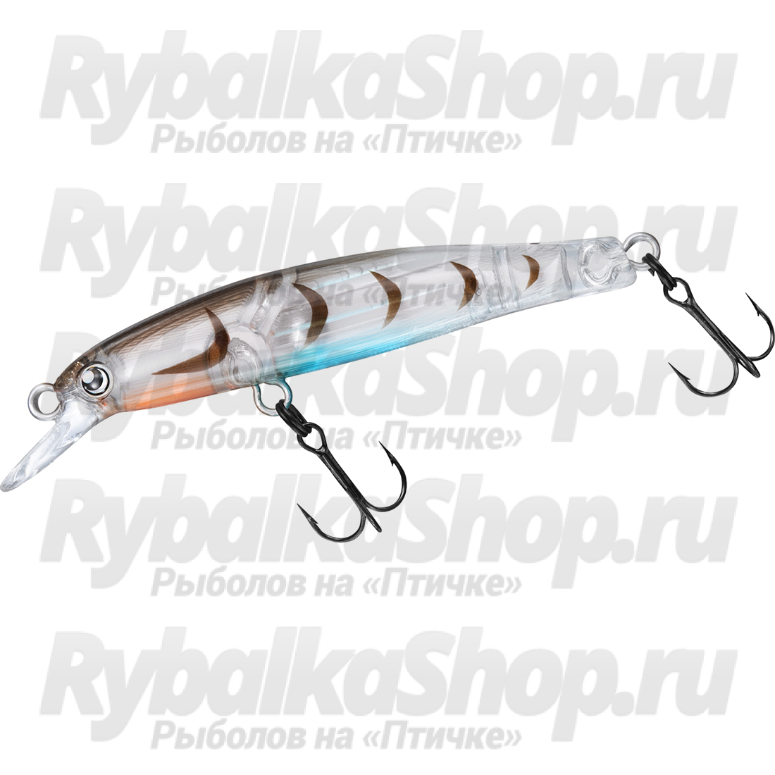 Воблер оснащен двумя тройными крючками.