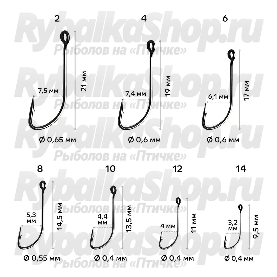 Тонкая проволока и надежная заточка. Острое жало S hook надежно пробивает губу рыбы даже во время аккуратных поклевок, а тонкая проволока надежно зафиксирует рыбу и не даст ей сойти. Это самые тонкие наши крючки, диаметр проволоки в нано-размерах начинается всего от 0.38 мм!