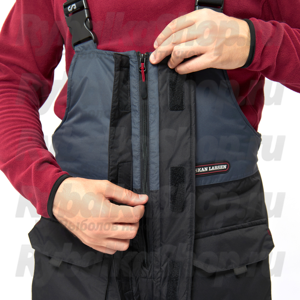 Alaskan Larsen – раздельный зимний костюм для активной рыбалки. Небольшой вес и анатомический крой позволяет легко и быстро двигаться во время рыбалки, не сковывая движений.