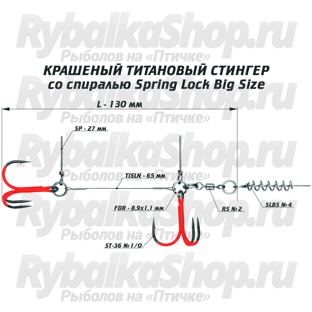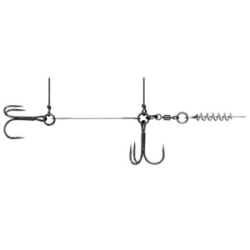 Готовая оснастка-стингер титановый со спиралью Vido Craft Spring Lock Big Size (VD-CTiSL) идеально подходит для силиконовых приманок средних и крупных размеров. Данная оснастка состоит из 2 качественных крючков-тройников, соединенных проволочным каркасом, спирали, вертлюга, заводных колец и шипов, служащих для фиксации стингера и его составляющих элементов в теле крупной мягкой приманки.