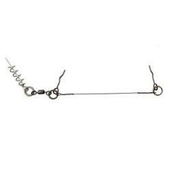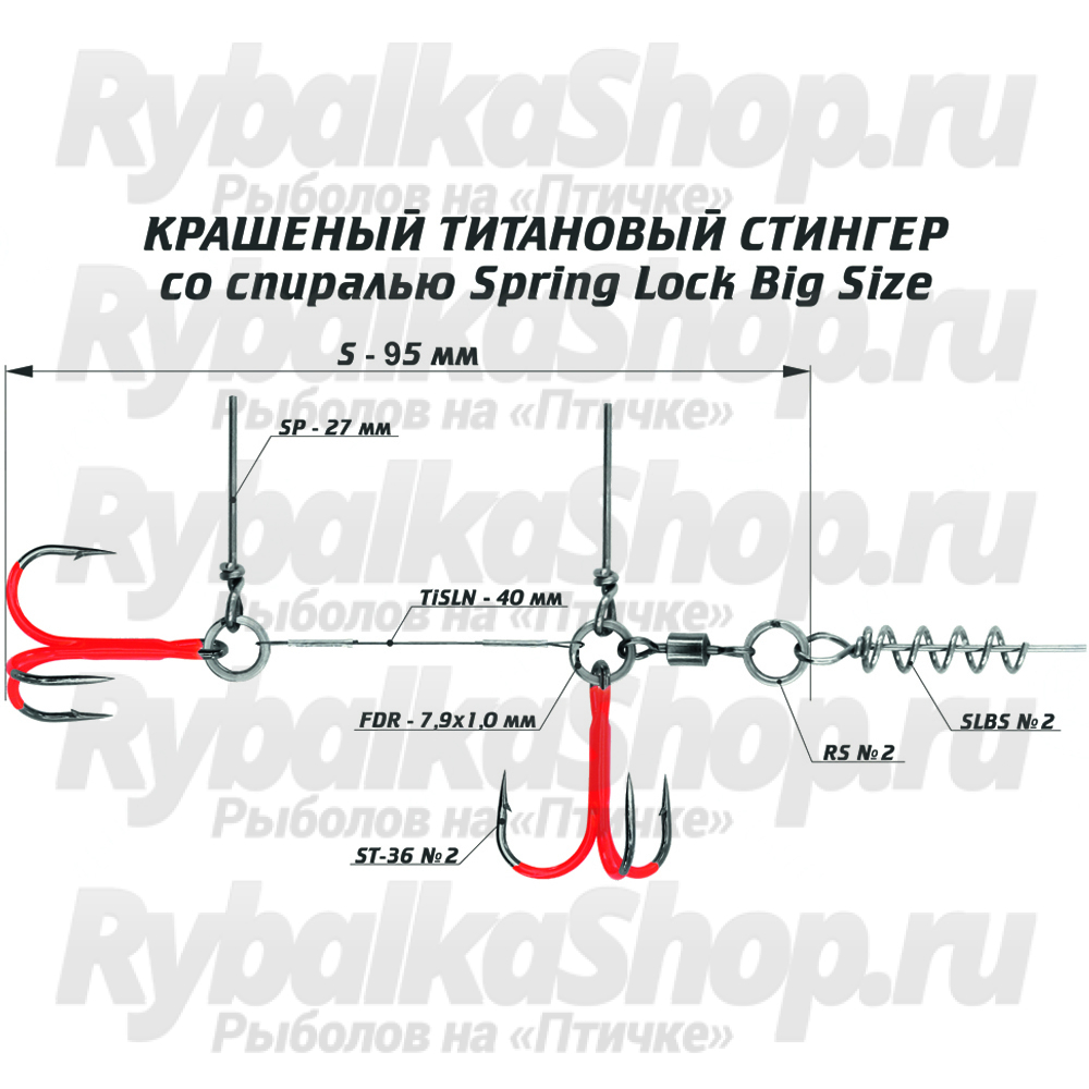 Готовая оснастка-стингер титановый со спиралью Vido Craft Spring Lock Big Size (VD-CTiSL) идеально подходит для силиконовых приманок средних и крупных размеров. Данная оснастка состоит из 2 качественных крючков-тройников, соединенных проволочным каркасом, спирали, вертлюга, заводных колец и шипов, служащих для фиксации стингера и его составляющих элементов в теле крупной мягкой приманки.