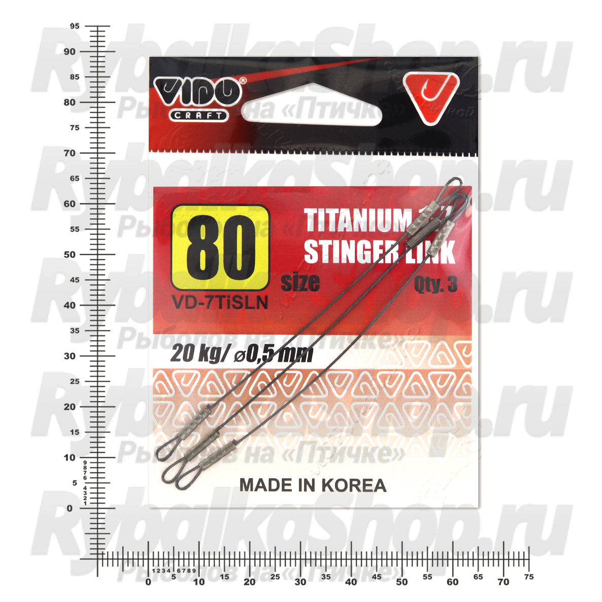 Соединительное звено для стингера из титана Vido Craft 1х7, 80 мм, толщ. 0,5 мм, 20 кг, 3 шт/уп VD-7TiSLN-05-80