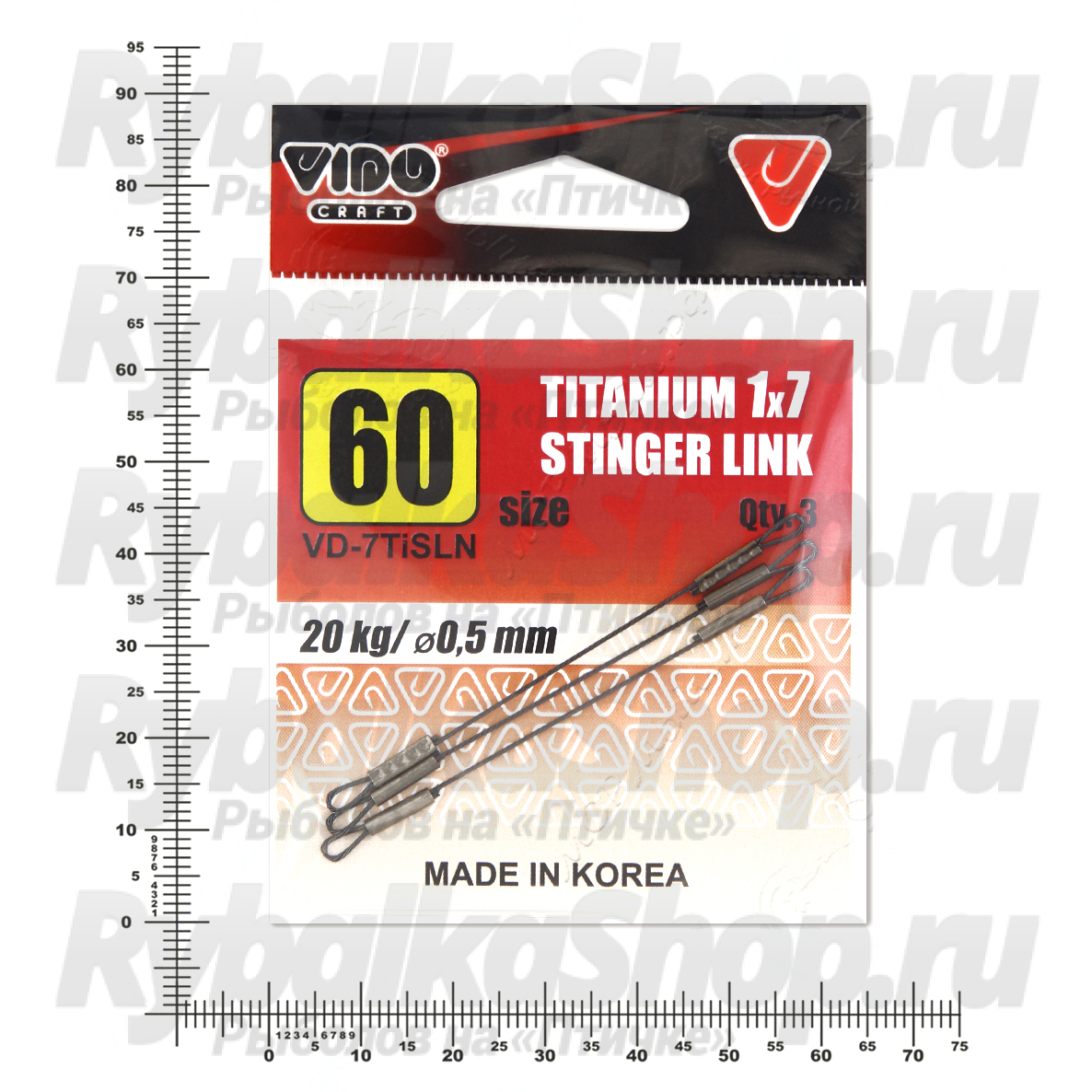 Соединительное звено для стингера из титана Vido Craft 1х7, 60 мм, толщ. 0,5 мм, 20 кг, 3 шт/уп VD-7TiSLN-05-60