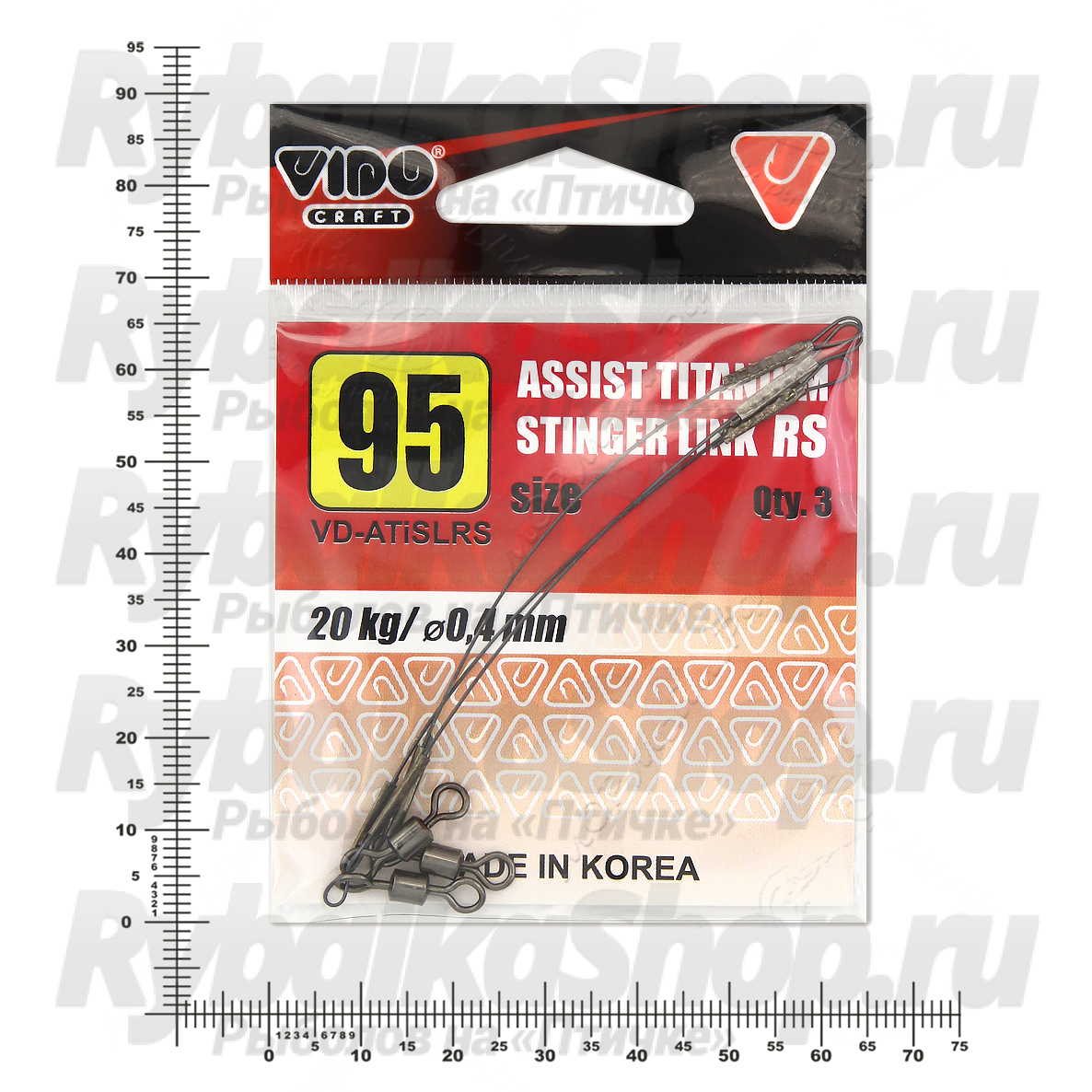 Титановое звено с вертлюгом для ассиста Vido Craft 95 мм, толщ. 0,4 мм, 20 кг, 3 шт/уп VD-ATiSLRS-04-95(3)