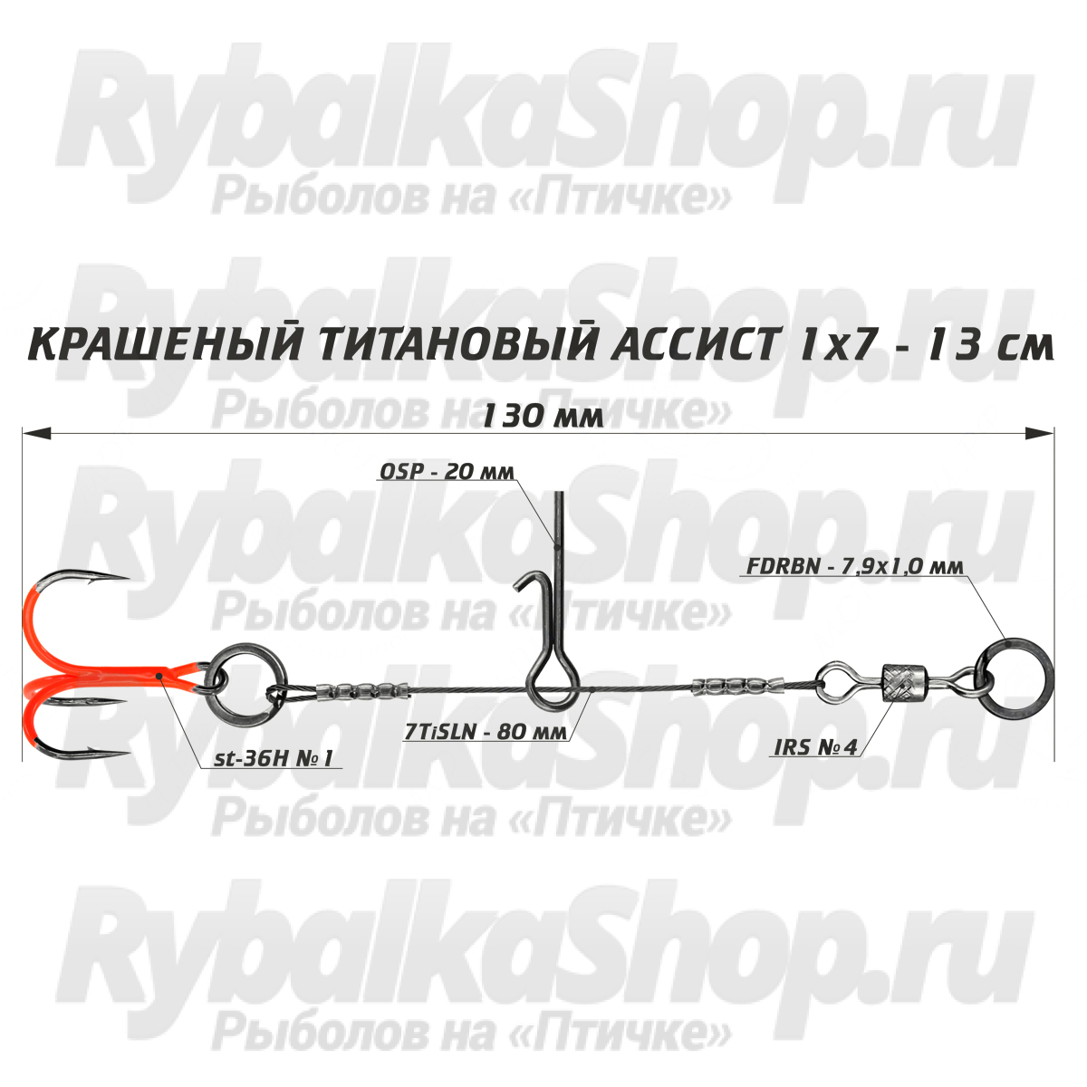 Особенность оснастки Vido Craft Titanium 1х7 Assist VD-7CTiJE в том, что крючок покрыт оранжевой флуоресцентной покраской (светится в ультрафиолете).