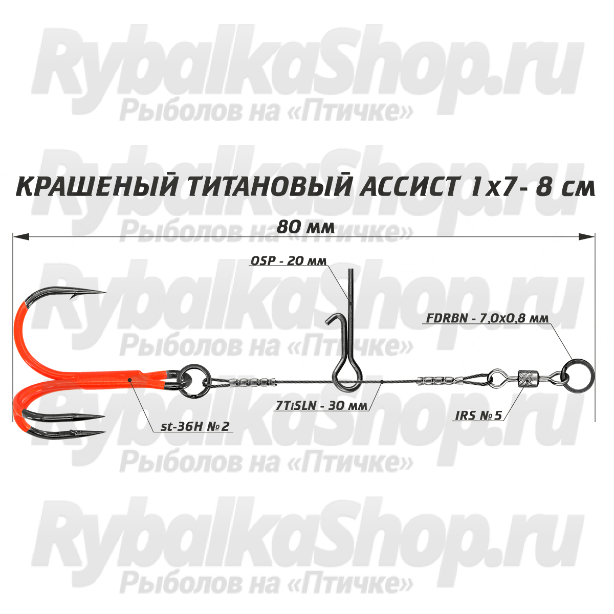 Особенность оснастки Vido Craft Titanium 1х7 Assist VD-7CTiJE в том, что крючок покрыт оранжевой флуоресцентной покраской (светится в ультрафиолете).