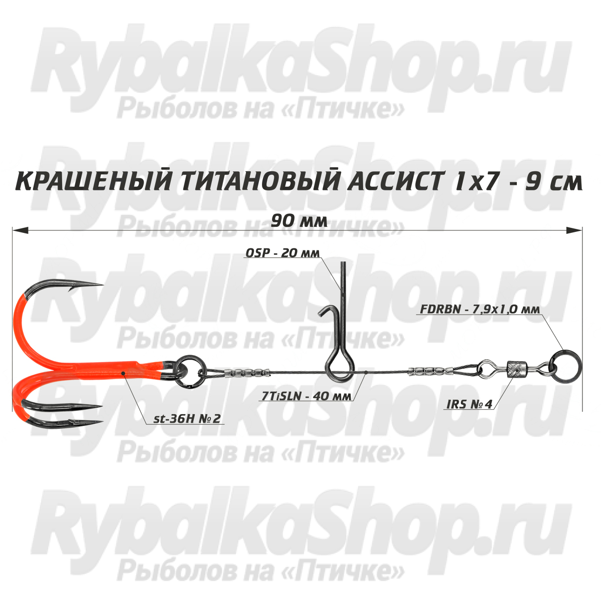 Особенность оснастки Vido Craft Titanium 1х7 Assist VD-7CTiJE в том, что крючок покрыт оранжевой флуоресцентной покраской (светится в ультрафиолете).