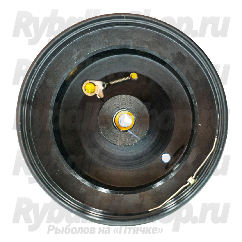На шпуле установлена круглая металлическая клипса, выемка под которую закрыта пластиком для предотвращения повреждения лески.