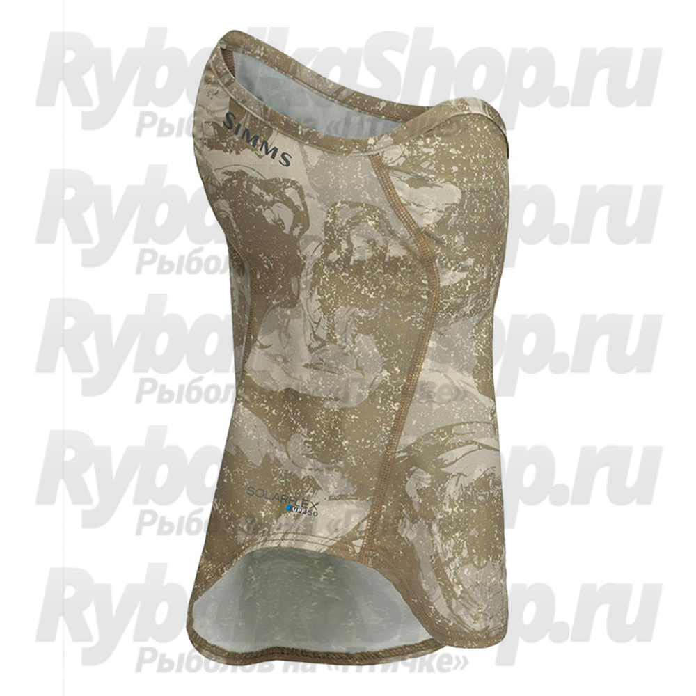 Маска изготовлена из материала InsectShield UPF50 SolarFlex. Ткань SolarFlex наделена защитой от лучей ультрафиолета. Чтобы не мешать дыханию, в области носа предусмотрена перфорация. Крой маски позволяет надевать ее поверх кепки. Удлиненная нижняя часть закроет вырез на футболке. Ткань быстро выводит испарения от тела на поверхность изделия, не позволяя поту скапливаться под экипировкой.