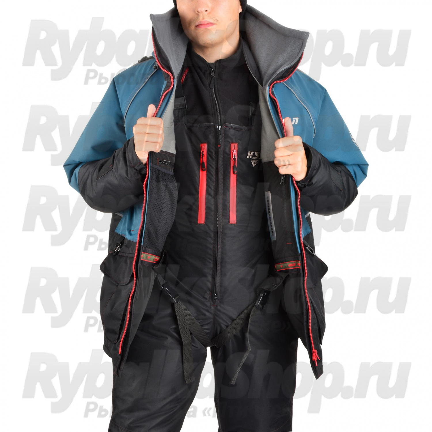 Высокий воротник и удобный капюшон с жестким козырьком надежно защищают от ветра и влаги, а глубокие утепленные карманы предназначены для хранения необходимого инвентаря и согрева рук. Специальные крепления на рукавах позволяют быстро использовать спасалки в случае падения в воду.