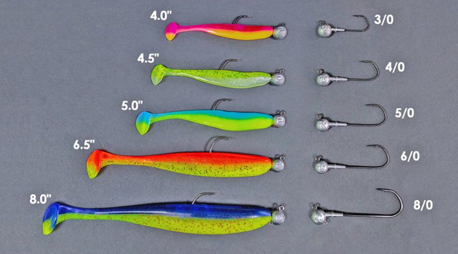 Для того, чтобы джиг-головка не сковывала игру приманки из мягкого пластика, рекомендуется подобрать размер крючка так, чтобы он выходил из силикона от 1/3 до 1/2 по длине приманки.