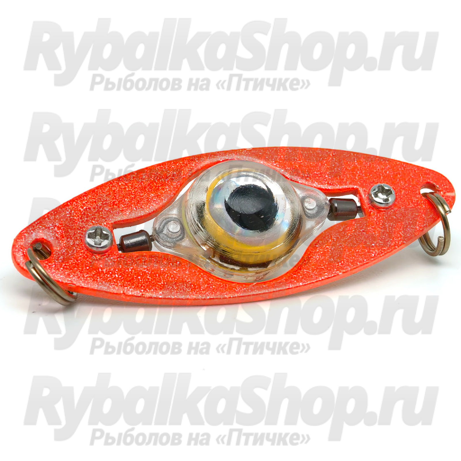 Оснащена сменным светодиодным 3D-глазом, мигающим при попадании в воду, что значительно активизирует клёв.