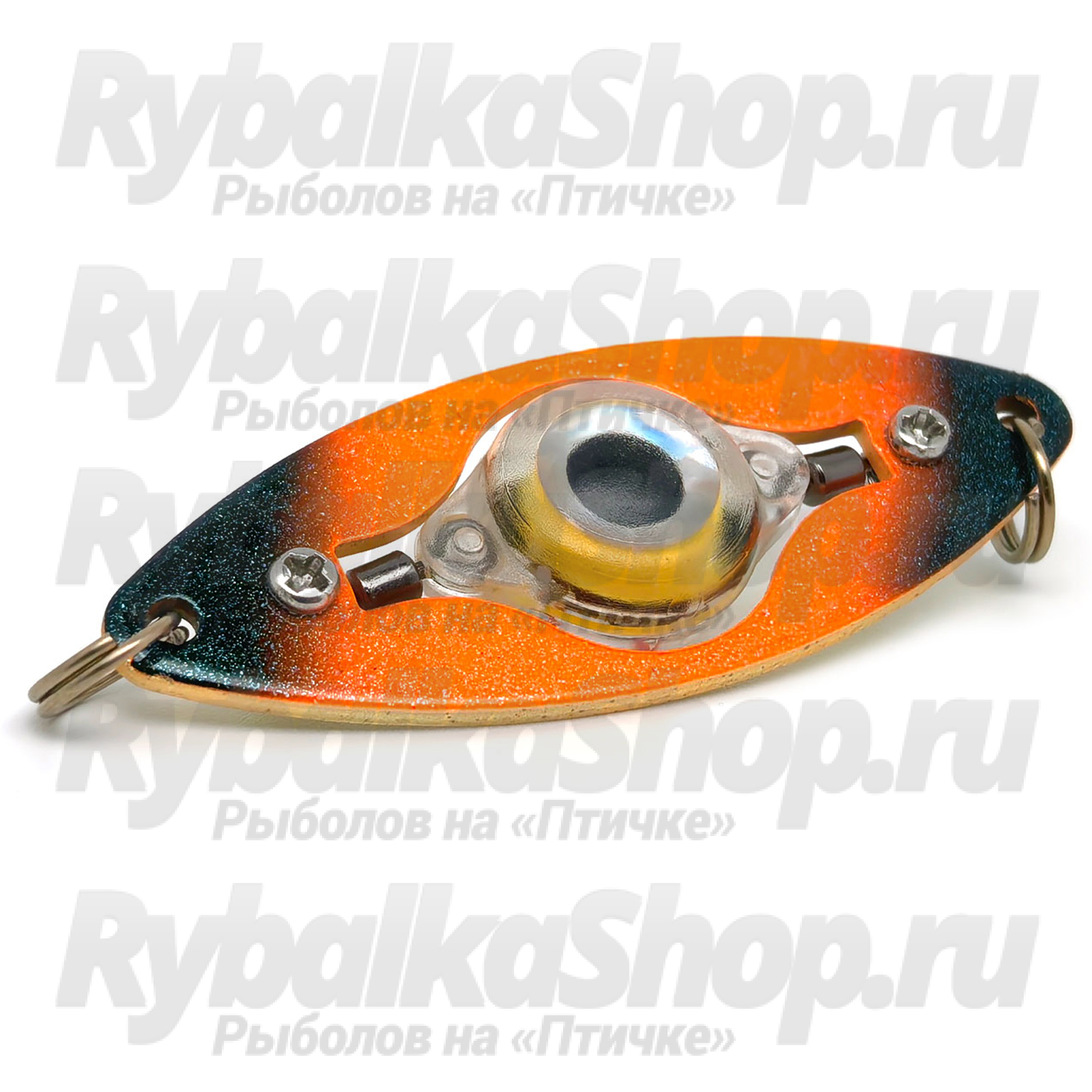 Оснащена сменным светодиодным 3D-глазом, мигающим при попадании в воду, что значительно активизирует клёв.
