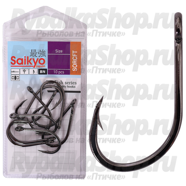 Крючки Saikyo Cat Fish изготовлены из усиленной проволоки. Дополнительная прочность достигается использованием высокоуглеродистой стали с добавлением легирующих материалов и проковкой крючка. Химическая заточка жала обеспечивает уверенную подсечку рыбы, крючок легко пробивает прочное небо сома. Загиб жала внутрь дополнительно облегчает реализацию поклевки. Рекомендован для ловли сома на переметы, донки и квок.