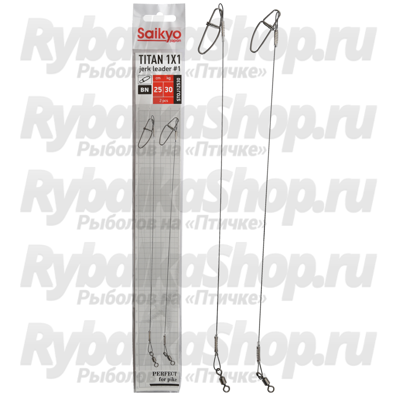 Хороший стальной поводок – это основа любой охоты на щуку. Поводки Saikyo Titan 1x1 Jerk – это первоклассная нержавеющая сталь в дополнительной оболочке с вплетёнными никелированными вертлюжками и оснащённые застёжками. Их применение обеспечивает гарантию уверенного вываживания агрессивной щуки. Поводки Saikyo доступны в широком диапазоне длин и нагрузок.