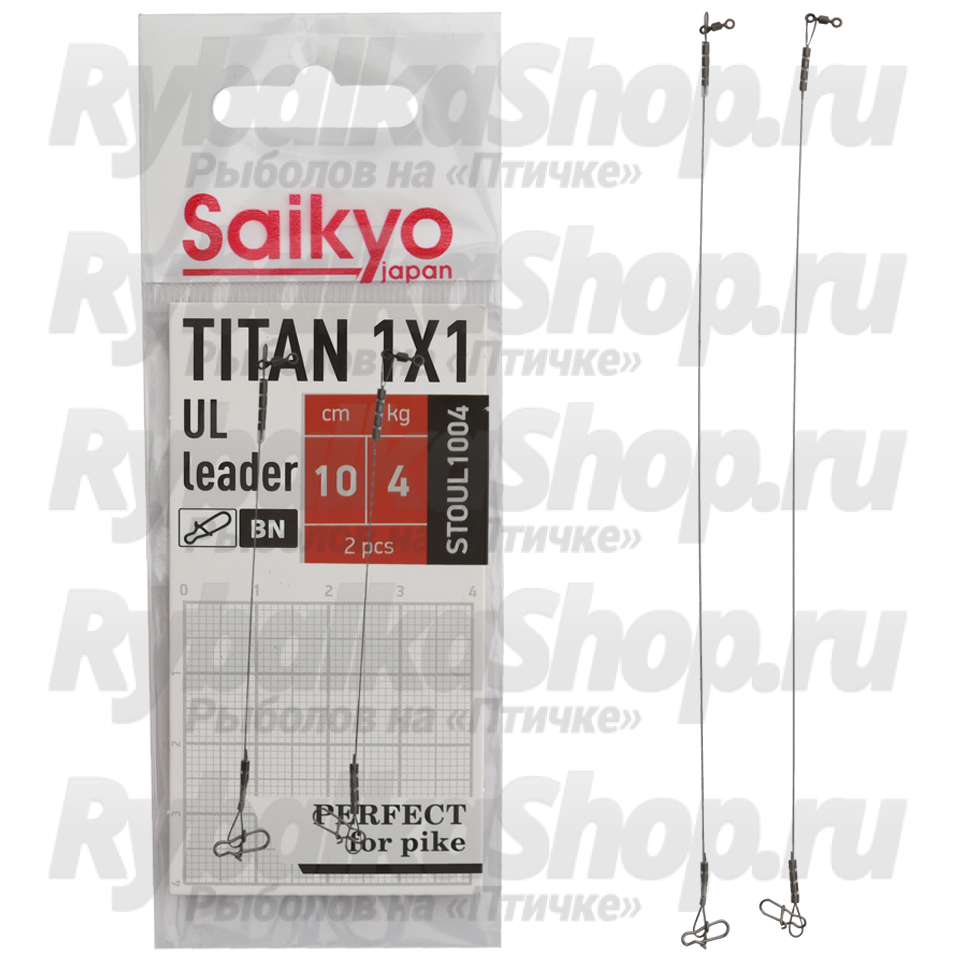 Поводок Saikyo Titan 1x1 UL STOUL отлично сочетается с воблерами, вращающимися и колеблющимися блеснами. Основа поводка - упругая проволока из титанового сплава, благодаря ей поводок отлично держит форму, надежен и всегда остается ровным. На поводках стоят легкие, деликатные, но очень надежные застежки.