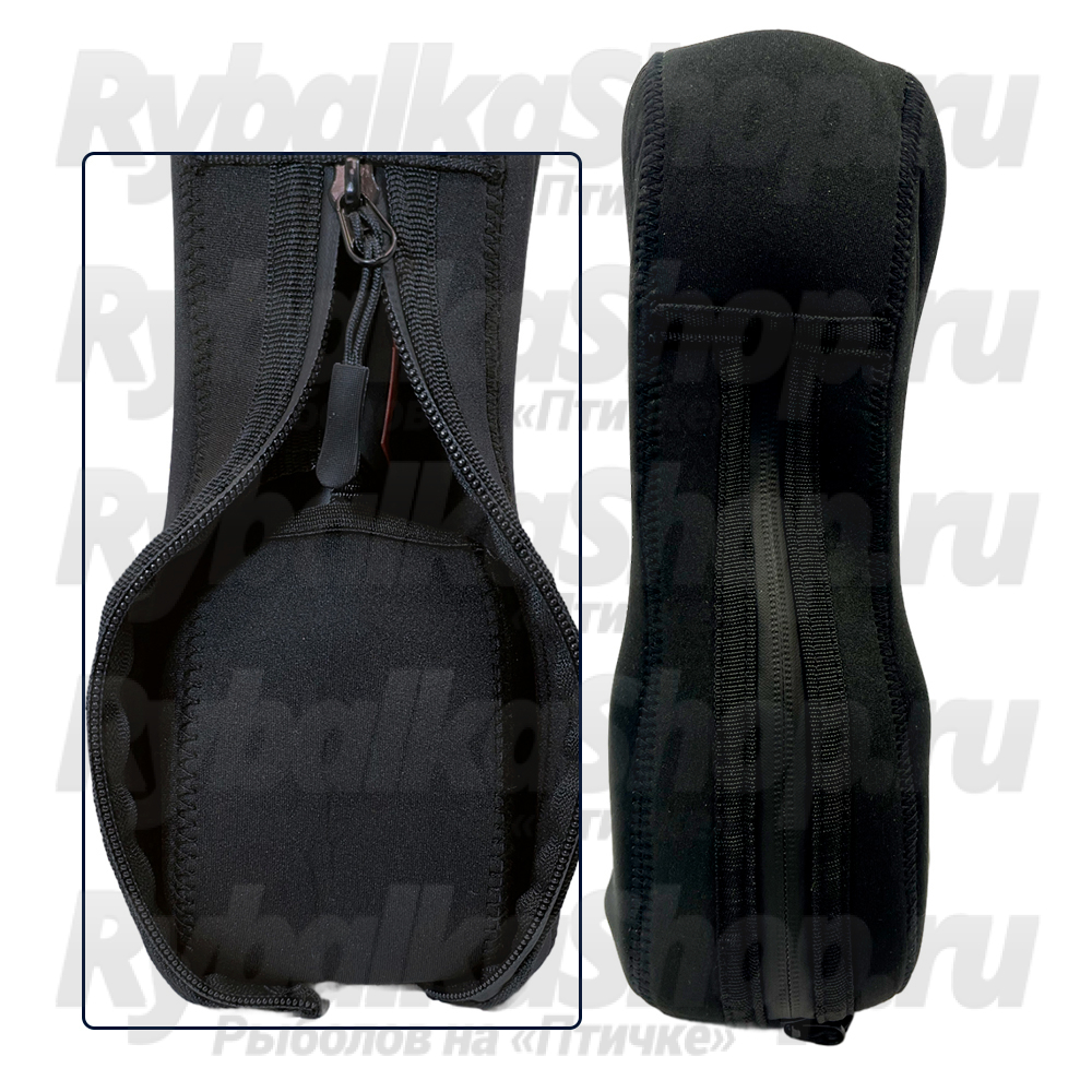 Основным материалом чехла является неопрен — инновационная непромокаемая ткань, которая отличается высокой прочностью, гибкостью и устойчивостью к низким температурам. Для дополнительной надежности материал прошит армированными нитями на высокотехнологичном оборудовании, что гарантирует долговечность изделия даже при интенсивной эксплуатации. Влагозащитная молния, встроенная в конструкцию чехла, обеспечивает герметичность и предотвращает попадание влаги внутрь, что особенно важно в условиях зимней рыбалки или работы на улице в дождливую погоду.
