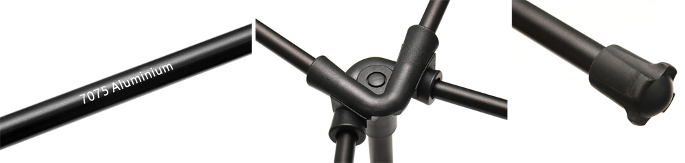 Каркас трубы изготовлен из алюминиевого сплава 7075. Для стабилизации конструкции использован пластик DuPont, который более прочный, чем обычный пластик. Противоскользящий чехол для ножек стула.
