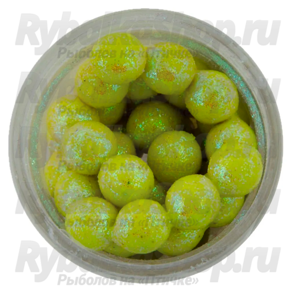 Форелевая приманка икра плавающая с блестками Berkley Sparkle Floating Power Eggs Magnum Fluo Yellow/Scales