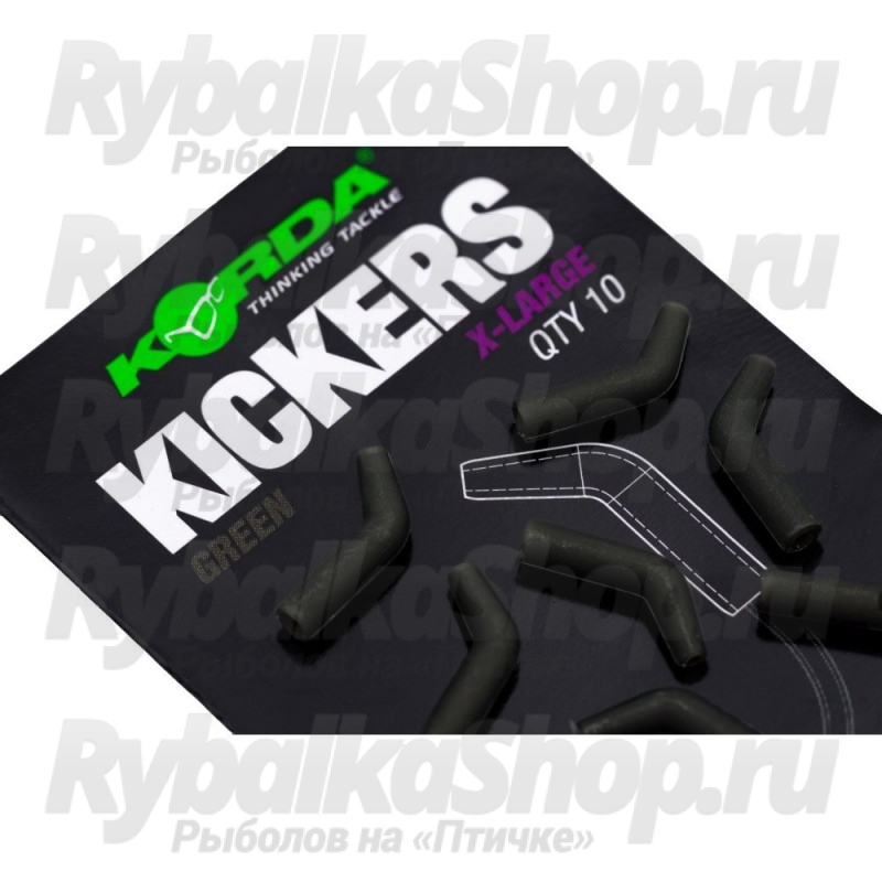 Korda Kickers — специальные коннекторы для цевья для правильной ориентировки крючка под водой, что помогает засекать рыбу за нижнюю губу. Агрессивный изгиб коннектора помогает крючку удерживаться в пасте трофея во время вываживания. Kickers изготовлены из гибкого пластика, который с одной стороны легко монтируется на цевье, но при этом очень хорошо держится на нем. В линейке доступны как яркие расцветки, так и камуфляжные. Классические тона вроде зеленого и коричневого помогут хорошенько замаскировать оснастку на дне водоема. Однако при этом яркие Kickers так же показали свою эффективность в ряде случаев — благодаря им рыбе проще найти наживку на дне.