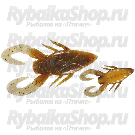 Приманка имеет плоское тело, напоминающее черепаший панцирь, что позволяет ей при использовании с оснасткой без огрузки скользить назад, уходя от рыболова, и попадать в самые труднодоступные места под нависающими корягами, доками или травой.