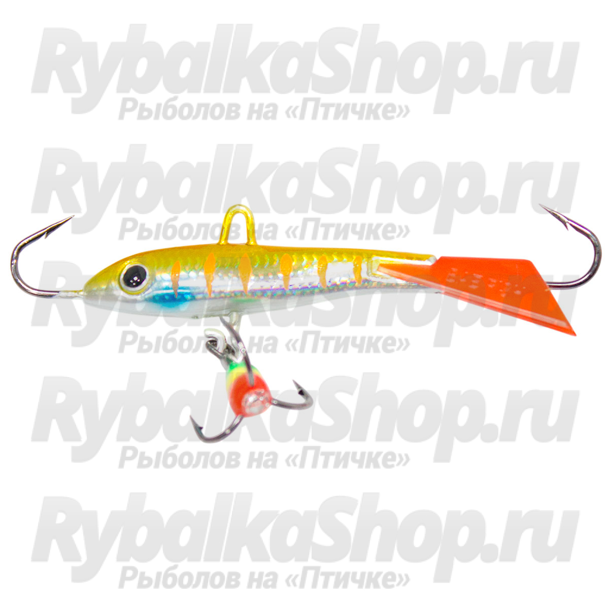 - оснащение: тройник и одинарные крючки в головной и хвостовой частях.