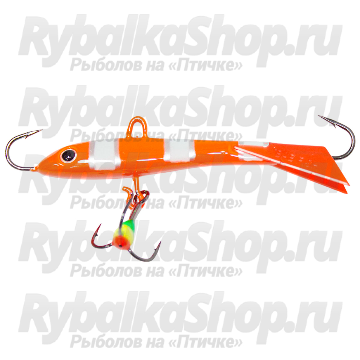 - оснащение: тройник и одинарные крючки в головной и хвостовой частях.