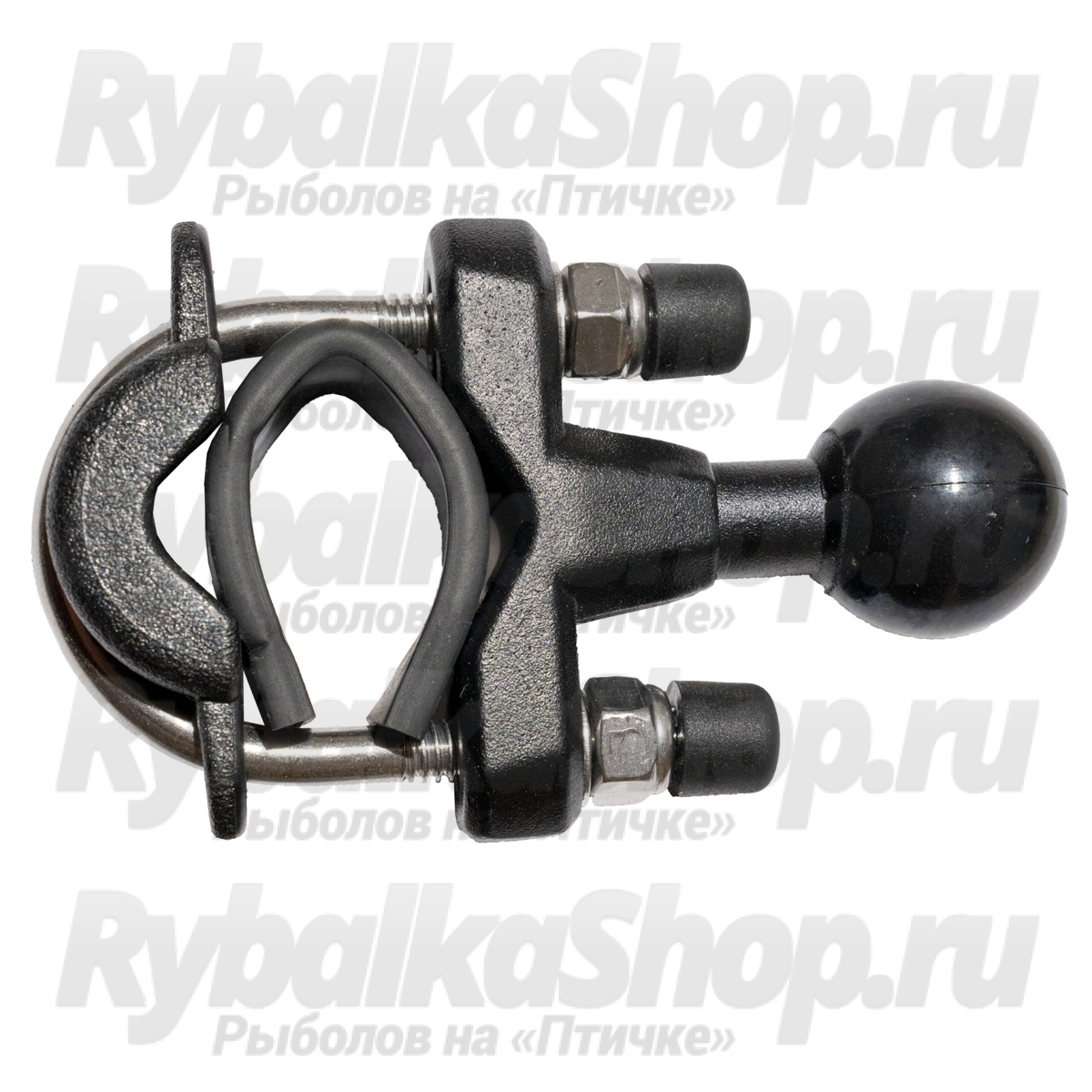 • Металлический крепеж с U-скобами шириной 38мм и 46мм и прорезиненным шаром Ø 25мм (1inch) для стационарной установки на руль мототехники, лодочную таргу и другие элементы