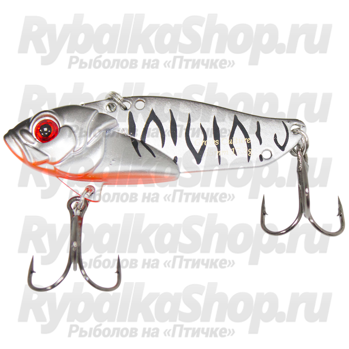 В задней части приманки располагаются два отверстия для перестановки крючка. Помимо штатных тройников, на Grows Culture VIB можно ставить двойники, улучшая ее проходимость в сложных местах, а также оснащать задний крючок опушкой или твистером.