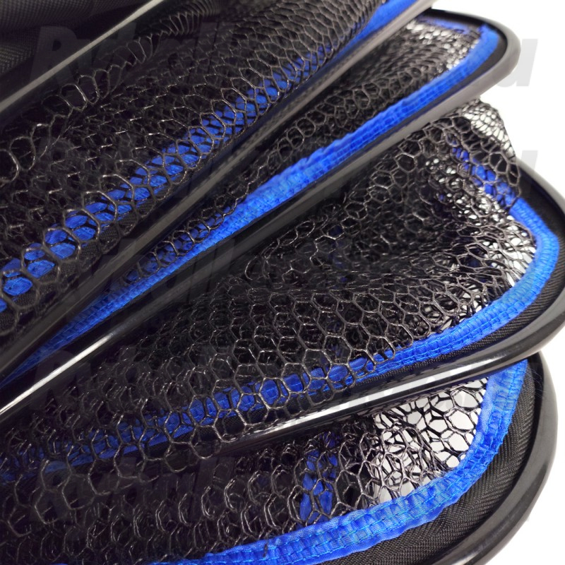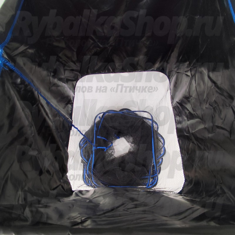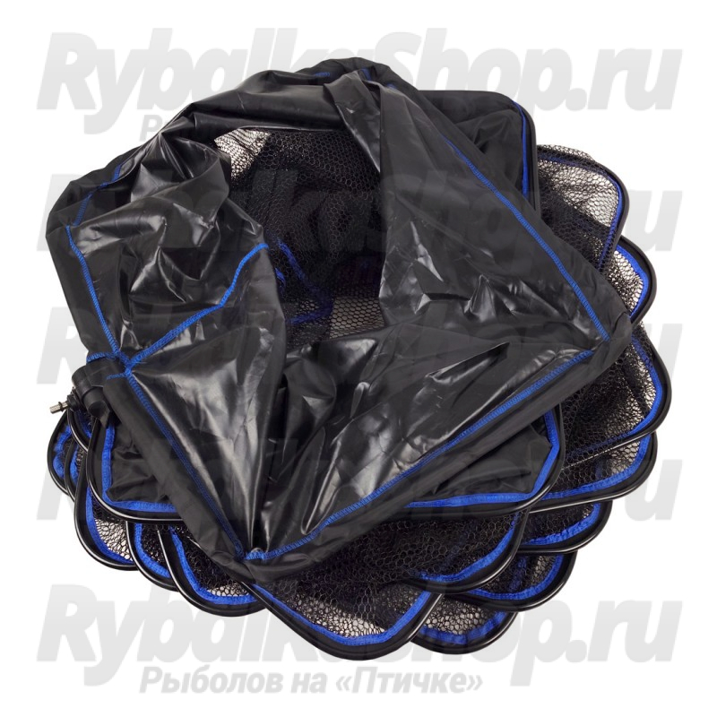 Прямоугольное сечение садка предотвращает его перемещение по дну под воздействием бокового течения. На нижней части расположены две пластиковые петли для крепления дополнительного груза. Между первым и вторым обручами находится вставка из прочного нейлона.Первое кольцо садка увеличенного размера 60см.