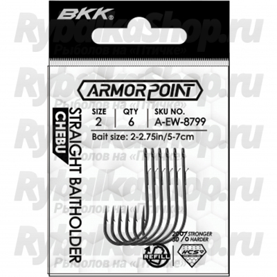 Крючок одинарный BKK Armorpoint - Straight Baitholder-Chebu (Refill Pack) (A-EW-8800) - 1# (6шт)