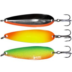 Блесна колеблющаяся Lucky John Salmon выпускается в трех размерах. Разработана для ловли лососевых рыб при ловли на течении. Модель имеет три весовые категории: 14; 19 и 24 грамма, что позволяет подобрать модель блесны SALMON под разные условия ловли . Блесна имеет высококачественное покрытие, стойкое к корозии и различным условиям ловли на реках с каменистым дном. У приманки наблюдается отличная игра, и при быстрой, и при медленной проводке, что привлекает даже пассивного хищника. Дальность полета при забросе увеличивается пропорционально весу приманки. Цветовая линейка блесен подобрана командой экспертов Lucky John, позволяет подобрать цвет под определенную прозрачность воды и разное освещение.