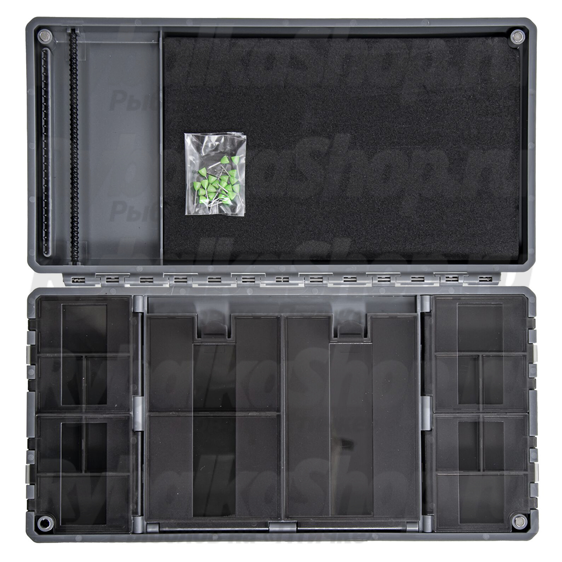 Поводочница Feeder Concept 248×130×38 (FC214-001) для хранения и транспортировки готовых карповых поводков и комплектующих для их изготовления. На одной стороне коробки располагается подложка для закрепления поводков, а на второй 15 отделений с крышками для хранения оснасток и комплектующих. В закрытом состоянии поводочница фиксируется четырьмя сверхсильными магнитами. Поводочница изготовлена из прочного пластика, который прослужит вам не один год. На крышке также есть линейка, позволяющая точно измерить длину поводка. В комплекте 20 иголок для фиксации поводков.