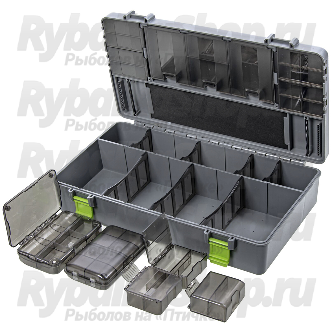 Коробка для аксессуаров Feeder Concept Accessory Box Set для фидерной и карповой рыбалки. Благодаря большой вместительности позволяет собрать всё необходимое для изготовления монтажей и оснасток в одной коробке. Коробка изготовлена из прочного пластика, который прослужит вам не один год. Надежные замки на коробке и внутренних отсеках исключают варианты самопроизвольного открытия. На крышке также есть линейка, позволяющая точно измерить длину оснастки. Интегрированная в коробку поводочница позволят хранить внутри большое количество готовых карповых поводков.