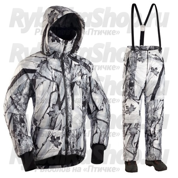 Костюм состоит из специально модифицированных куртки Valdez и брюк-самосбросов Hike. Для изготовления маскировочного костюма для охоты использована не шуршащая при движении верхняя ткань камуфляжных расцветок, что особенно порадует любителей охоты. Искусственный утеплитель костюма по теплоизоляции не уступает пуху, при этом сохраняет свои полезные качества при намокании, что очень актуально при использовании костюма в условиях высокой влажности. Анатомический крой локтевых и коленных зон обеспечивает свободу движений, контактные зоны имеют усиление водонепроницаемым и "дышащим" материалом.