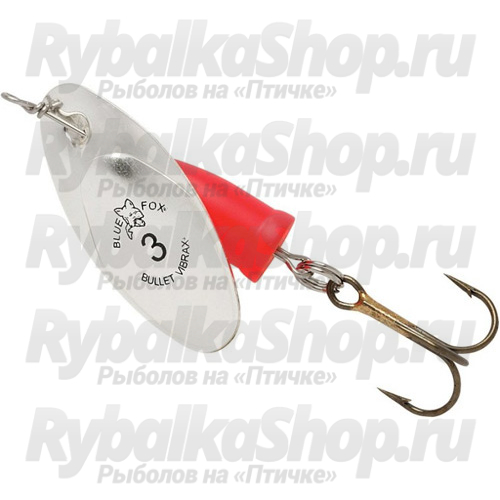 Blue Fox Vibrax Bullet блесна вращающаяся, с увеличенным на 30% весом, по сравнению с классической серией, а так же лепесток блесны большего размера. Все это делает блесну более подвижной, и вибрация у приманки максимальна для такой конструкции. "Вертушка" оснащается прочными острыми тройниками, лепесток имеет необычную расцветку. Конструкция предотвращает перекручиванию лески.