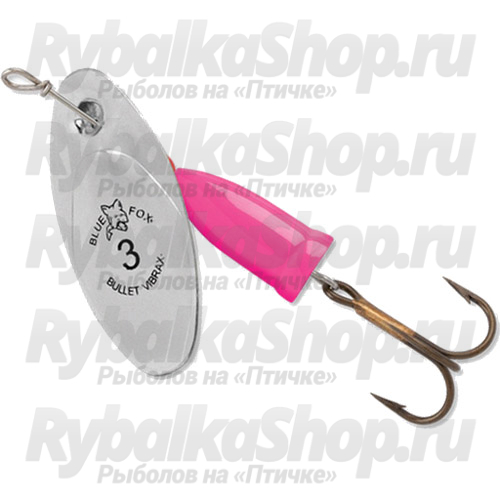 Blue Fox Vibrax Bullet блесна вращающаяся, с увеличенным на 30% весом, по сравнению с классической серией, а так же лепесток блесны большего размера. Все это делает блесну более подвижной, и вибрация у приманки максимальна для такой конструкции. "Вертушка" оснащается прочными острыми тройниками, лепесток имеет необычную расцветку. Конструкция предотвращает перекручиванию лески.
