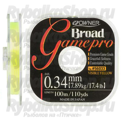 Монофиламентная леска Owner Broad Game Pro является превосходным сочетанием манящей цены и высокого качества, одобренного Торговой Ассоциацией Европейских Рыболовов. Эта леска предусматривает долгую работу с минимальными повреждениями, поскольку, изготавливается из материалов, выдерживающих перепады температур и снижающих воздействие ультрафиолетовых лучей. Леска Owner Broad Game Pro используется многими рыболовами и имеет хорошую репутацию среди знатоков качественных рыболовных товаров.