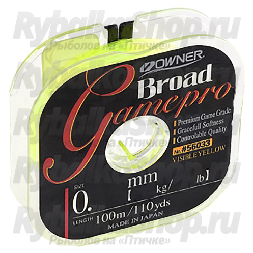 Монофиламентная леска Owner Broad Game Pro является превосходным сочетанием манящей цены и высокого качества, одобренного Торговой Ассоциацией Европейских Рыболовов. Эта леска предусматривает долгую работу с минимальными повреждениями, поскольку, изготавливается из материалов, выдерживающих перепады температур и снижающих воздействие ультрафиолетовых лучей. Леска Owner Broad Game Pro используется многими рыболовами и имеет хорошую репутацию среди знатоков качественных рыболовных товаров.