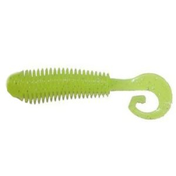 Отличный съедобный твистер с "серпом" в виде латинской буквы "G". Благодаря такой форме хвост приманки при малейшем движении сразу включается в работу. Тело-личинка довольно объемное, что позволяет крючку хорошо держаться в приманке. Этот твистер отлично себя проявил при ловле окуней, щуки и судака.