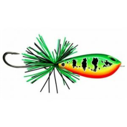 Воблер имеет реалистичную внешность, 3D голографические глаза, издает в воде дребезжащий звуки, оснащается VMC крючками из черного никеля.