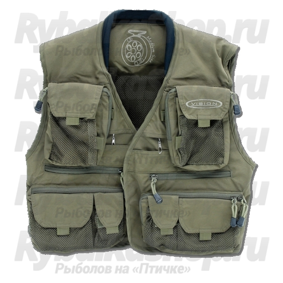 Забродный рыболовный жилет Vision Caribou Vest, с сетчатой подкладкой и вязанным воротничком, имеет множество карманов, удачно расположенных и снабженных высококачественными сверхпрочными молниями или застежками-липучками. Нейлоновое покрытие придает прочность и водоотталкивающие свойства. Плечевая часть, содержащая дополнительный слой из пористого эластичного материала, оптимально распределяет вес. В этой модели используется новый дизайн для хранения катушек/шпуль в безопасном месте. Вы не потеряете также свои инструменты, защищенные в походном положении специальным клапаном. На спине имеется D-образное кольцо для подсачека.