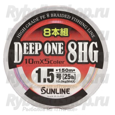 Sunline Deep One 8HG - новинка 2011г. На настоящий момент это самая высокотехнологичная плетеная леска у Sunline. Восьмижильный шнур из волокон HG PE - самого крепкого и прогрессивного материала, в тонких диаметрах. Шнур Deep One 8HG на ощупь очень близок к монолеске из-за идеально гладкой поверхности, и при этом очень мягкий. Эти качества, в совокупности с очень тонким для для его разрывной нагрузки диаметром позволяют добиться рекордной дальности заброса и делают шнур практически бесшумным при забросе. Также, благодаря гладкой поверхности и минимальному диаметру, Deep One 8HG имеет очень маленькую парусность в воде и на воздухе. Шнур идеально подходит как для джига, в особенности берегового, где требуется максимально дальний заброс и чувствительность и минимальная парусность, так и для ловли на воблеры и блесны на больших водоемах, где в приоритете стоит дальность заброса и максимальная чувствительность.