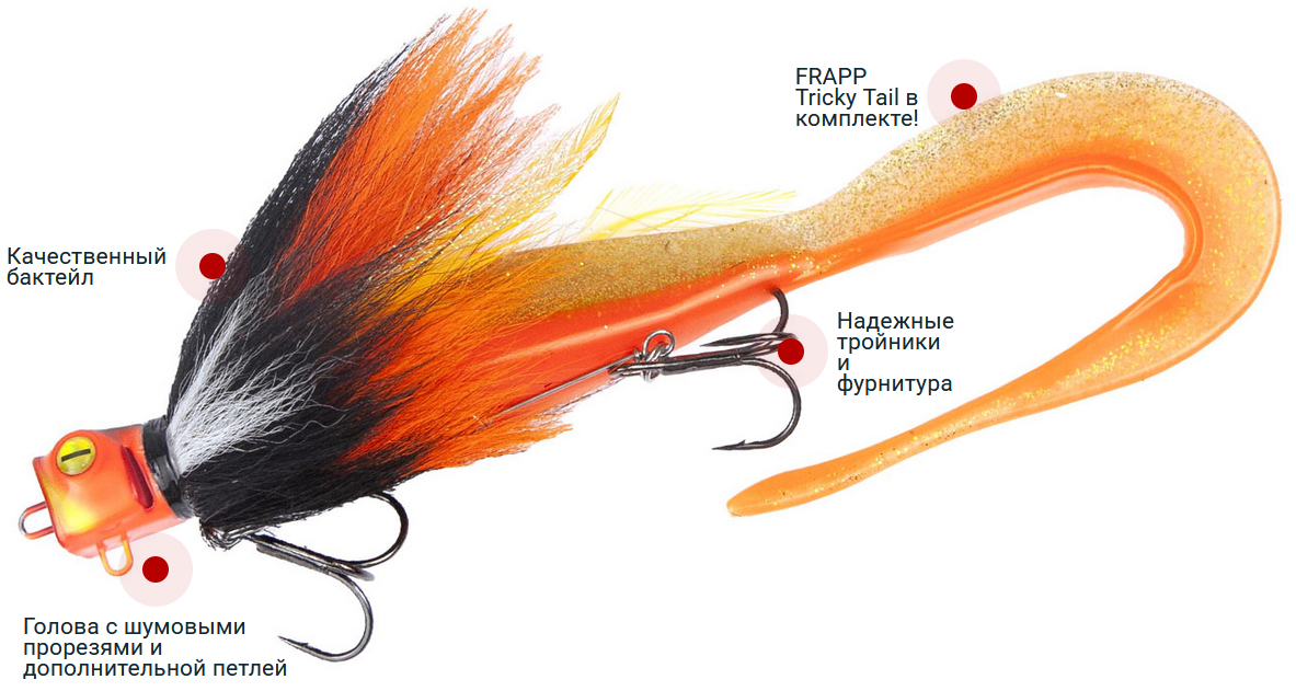 Можно легко менять хвостовую часть приманки, используя вместо стандартного Frapp Tricky Tail любую подходящую по размеру и геометрии силиконовую приманку.