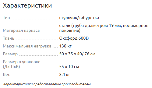Стул складной туристический (арт.T-N-TC-400.19s-G) выполнен из круглой стальной трубы диаметром 19 мм. Покрытие - полимерное. Ткань сиденья и спинки – Оксфорд 600D, высокопрочная ткань с нанесенным полиуретановым покрытием, которое обеспечивает водоотталкивающие свойства и препятствует накоплению грязи между волокнами. Компактно складывается для транспортировки.