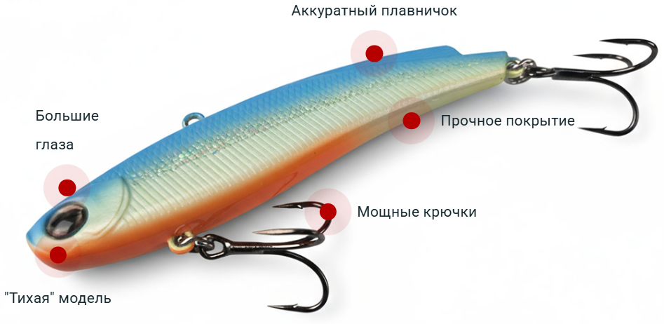 Отлично сочетается с современными снастями для ловли вибами в отвес и обеспечивает высокую результативность при ловле осторожного трофейного хищника.