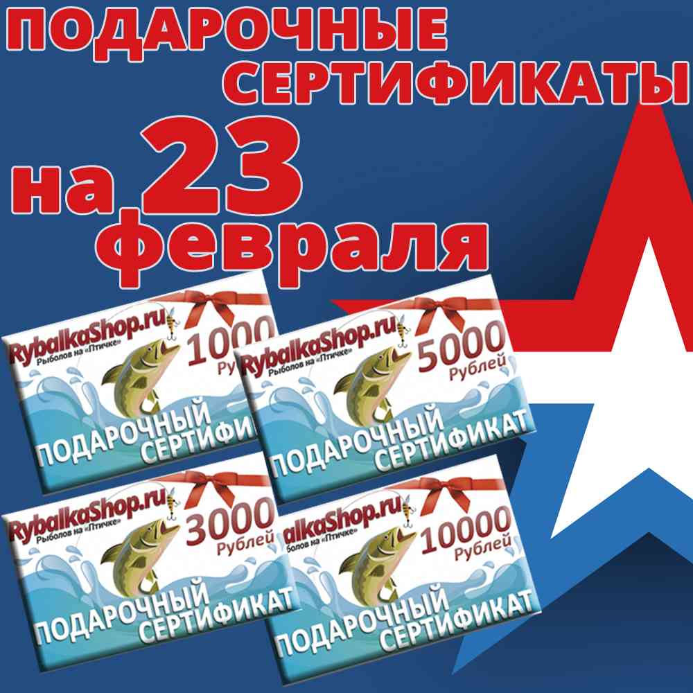 Дорогие друзья, близится праздник Защитников Отечества - 23 февраля! Это важный праздник доблести и мужества, с которым мы поздравляем всех мужчин! И если вы все еще теряетесь в сомнениях, что можно презентовать своим родным и близким людям, предлагаем вам универсальный подарок для каждого - подарочные сертификаты магазина RybalkaShop.ru "Рыболов на птичке". Их можно приобрести в розничных магазинах или в интернет-магазине RybalkaShop.ru....