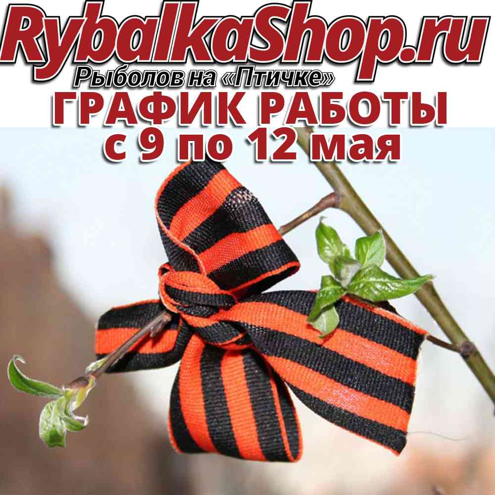 Дорогие друзья, обращаем ваше внимание на график работы наших магазинов в праздничные майские дни. С 9 по 12 мая розничные магазины будут работать до 20 часов. Наши менеджеры всегда проконсультируют Вас и подберут оптимальный вариант экипировки исходя из Ваших потребностей. Напоминаем, что не весь ассортимент интернет-магазина RybalkaShop.ru представлен в розничной сети. Для приобретения необходимого Вам товара в розничном магазине,...