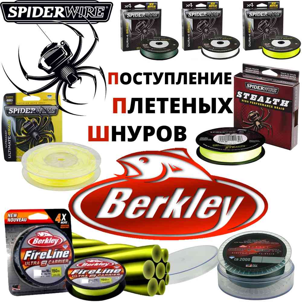 Уважаемые любители рыбалки, сообщаем вам о поступлении плетеных шнуров Berkley и Spiderwire. Изготавливаются эти шнуры из современного волокна Dyneema, которое отличается невероятной прочностью и обеспечивает хорошую чувствительность. Поверхность очень гладкая, что облегчает скольжение сквозь кольца удилища и способствует более дальнему забросу. Устойчивость цвета достигается за счет инновационного подхода к процессу окрашивания....